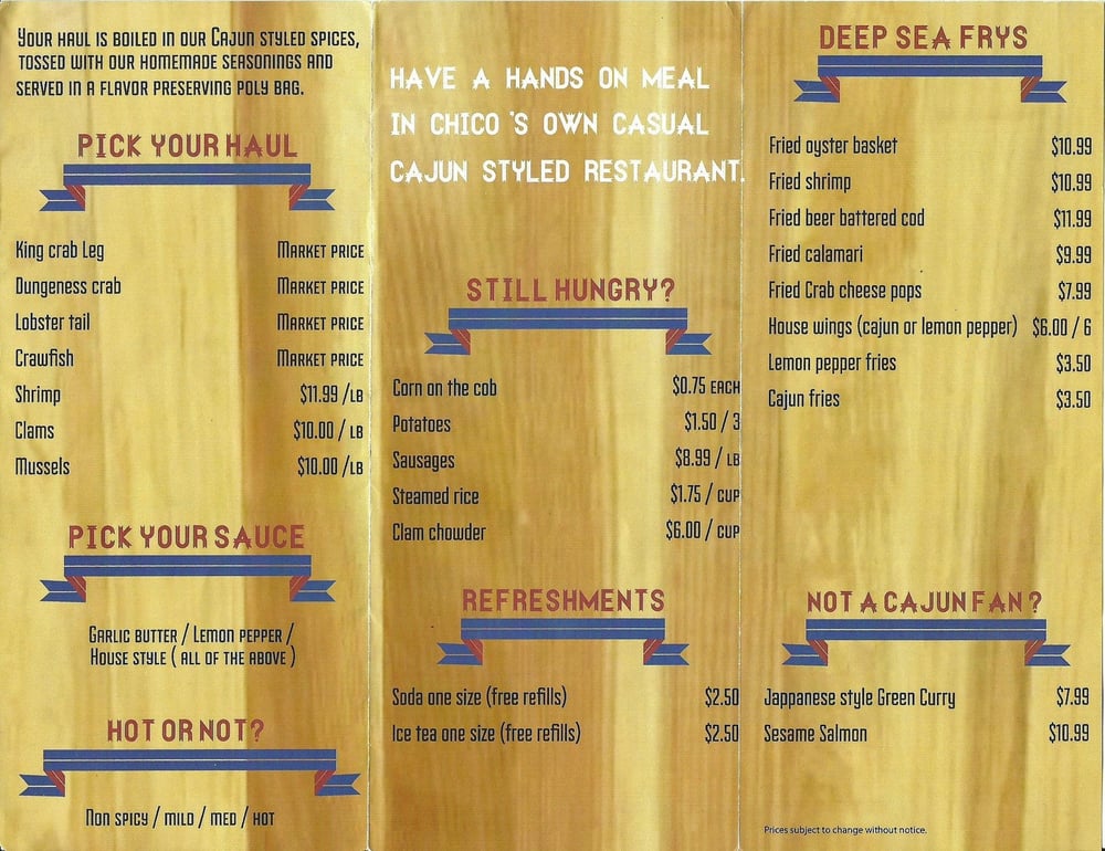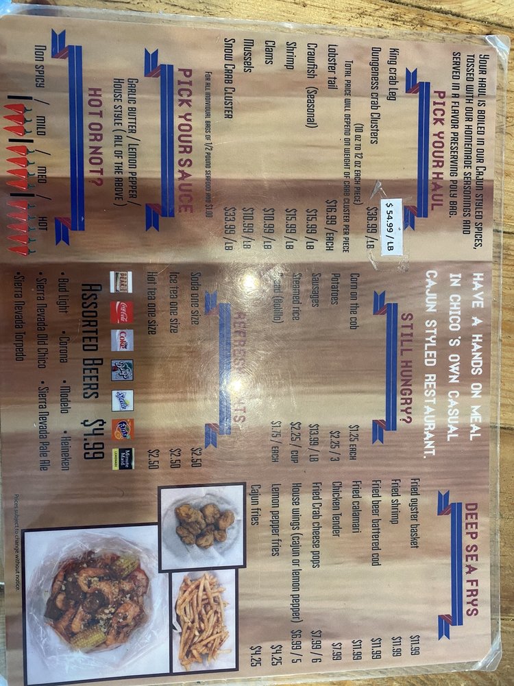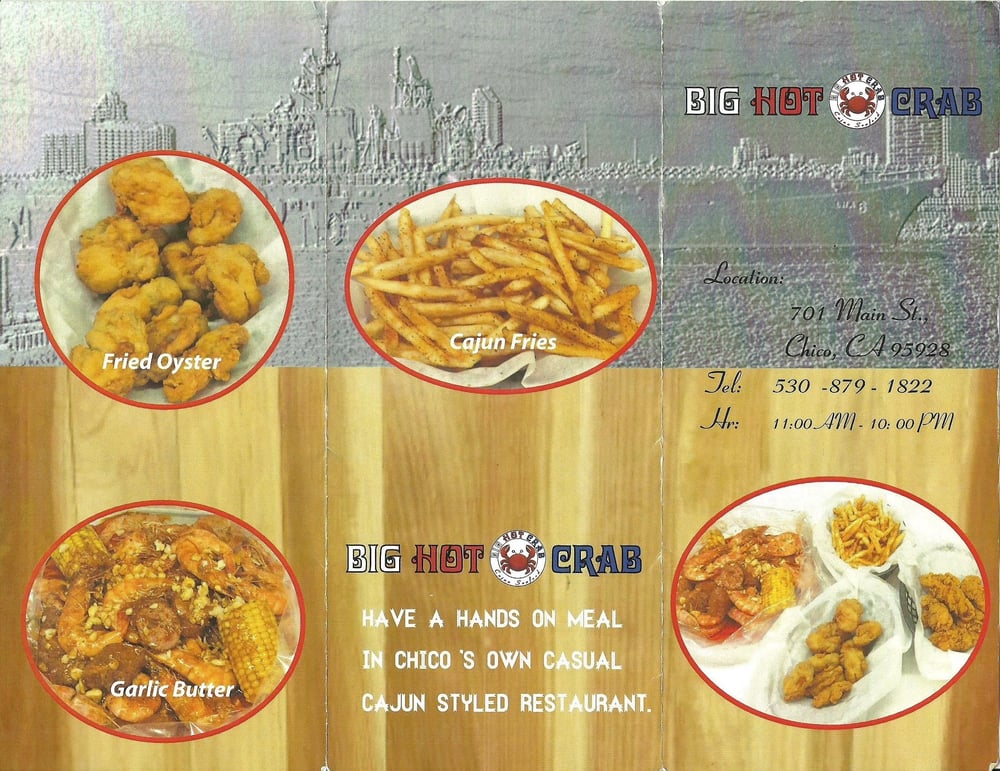 Introducing the menu at Big Hot Crab: Located in Chico, CA, this seafood restaurant offers a wide range of options for all diners, including many vegetarian choices. With options for reservations, delivery, takeout, and catering, Big Hot Crab aims to please. Customers rave about the juicy shrimp, house special mix sauce, calamari, and perfectly seasoned crab boils. The restaurant also accommodates families with a family-friendly atmosphere and a variety of dishes to satisfy everyone. The service is top-notch, and the food comes out quickly every time. If you're looking for a unique dining experience with delicious, spicy seafood, Big Hot Crab is the place to be. Don't miss out on this hidden gem for a truly unforgettable meal.